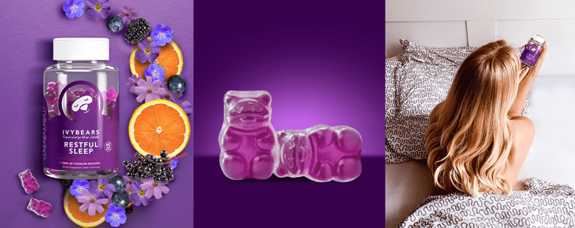 Our bears are naturally delicious, without added preservatives, artificial colors and flavors and free of titanium dioxide. 𝐈𝐕𝐘𝐁𝐄𝐀𝐑𝐒® Restful Sleep bears taste like fruity blackcurrant. 𝐈𝐕𝐘𝐁𝐄𝐀𝐑𝐒® Women’s Hair bears taste like a fruity mixture of berries.